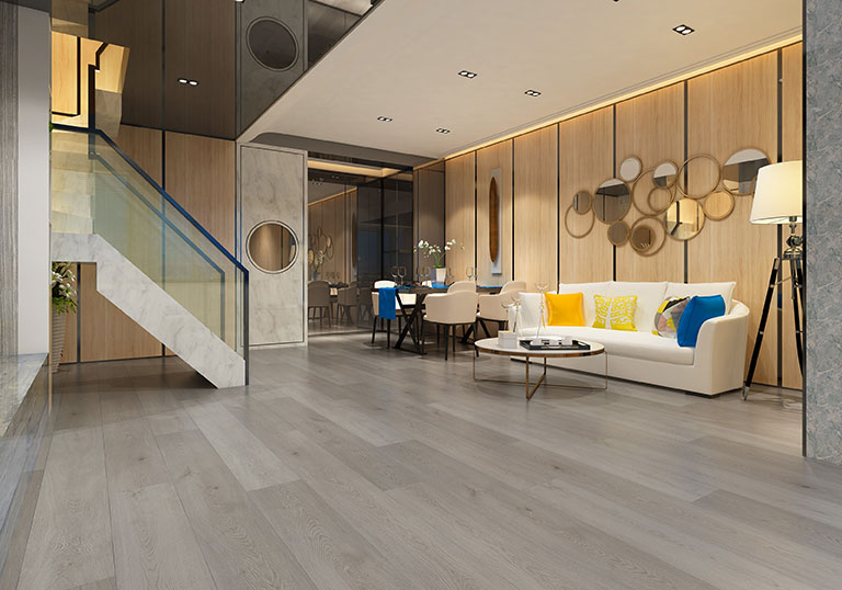 • Waterproof and moisture-proof: The substrate does not contain wood fibers and does not expand when exposed to water. It can be directly used in damp environments such as bathrooms and basements.